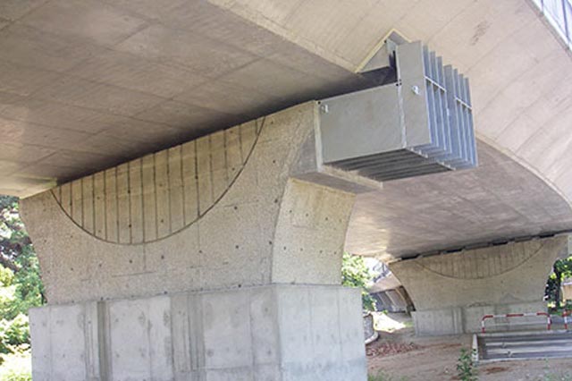 当社の強みである大型資材の運搬技術を生かし、主に「橋梁架設」「耐震補強」「落橋防止」といった建設工事を請け負っております。